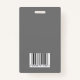 Crachá de ID do funcionário no design vertical clássico. Cinza de aço. Todos os elementos são modificáveis ou removíveis. Os elementos incluem: foto do funcionário, nome do funcionário, nome da empresa, departamento do funcionário. A parte traseira do design tem uma verificação de código de barras de segurança. Slot no topo para o pátio.