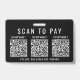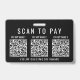 Sinal distintivo preto moderno para o seu negócio para coletar pagamentos em movimento com a opção de carregar 3 códigos QR para diferentes aplicativos de pagamento sem contato para os clientes lerem para efetuar pagamentos. Carregue os seus códigos QR e adicione o nome do seu negócio em letras brancas simples.