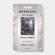 Distintivo de identificação de fotografia do portador do anel de noiva engraçado com sua foto personalizada em um fundo de design floral rosa cinza. No verso, você pode adicionar um código de barras personalizado e textos adicionais ou excluir o modelo.