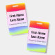 As características deste design do crachá um divertimento, arco-íris-como o teste padrão colorido do inclinação que caracteriza várias máscaras das cores gostam amarelo, alaranjado, vermelho, cor-de-rosa, roxo, azul e verde. Igualmente caracteriza um nome feito sob encomenda no texto colorido preto dentro de uma área clara branca. Há igualmente uma mensagem feita sob encomenda sob o nome do esse poderia mostrar a informação tal como um nome do papel do trabalho, ou uma profissão, ou um negócio/nome da empresa. [~Z0000176]