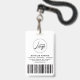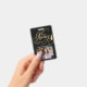 Crachá de negócios elegante e moderno para agente assinante de empréstimo notário com script de caligrafia manuscrito de folha falsa ''notary'' em fundo preto. Personalize com seus detalhes.