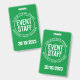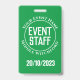Um crachá para um Membro do Funcionarios de Eventos. Altere o texto para seus detalhes. Crachá de Funcionarios. Crachá de Funcionarios de evento para um pátio ou clipe. Crachá do Funcionarios de eventos oficial. Texto branco sobre fundo verde.