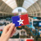 Crachá do nome com pavilhão da cidade de San Anton