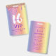 Faça uma declaração corajosa e colorida com este vibrante e glamouroso 16 convite. Apresentando um fundo deslumbrante do arco-íris com gotas brilhantes do arco-íris, este convite combina cores ousadas com uma torção divertida e moderna. Os detalhes sombrios acrescentam entusiasmo e energia, fazer a escolha perfeita para um na moda e memorável partido Sweet 16. Facilmente personalizável, você pode personalizar todos os detalhes para criar um convite exclusivo que reflita sua personalidade e defina o palco para uma noite para se lembrar.