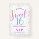 "Feliz Doce 16." Adicione diversão extra à sua festa de comemoração favorita de 16 aniversários quando você desmaiar estes crachás especiais de aniversário VIP passem keepsasaokê! A tipografia do arco-íris com escrita brilhante, juntamente com turquesa festiva, rosa púrpura e confete dourado, sobrepõe um fundo branco. Personalize o texto personalizado com o nome da sua filha na frente e a data e local da festa no verso. Excelente para a vanguarda que ama brilho e brilho modernos e que garante que adicione estilo ao seu partido especial! Convites de casamento, adesivos, pratos, guardanapos e outros doces de aniversário também estão disponíveis nesta moda e coleção especial. Basta digitar o nome da aniversariante e as informações do local da festa, e você pode personalizar facilmente este crachá de passe VIP de manutenção. Por favor, me mande mensagens com quaisquer perguntas ou solicitações.