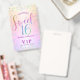 "Feliz Doce 16." Adicione diversão extra à sua festa de comemoração favorita de 16 aniversários quando você desmaiar estes crachás especiais de aniversário VIP passem keepsasaokê! A tipografia do arco-íris com escrita brilhante, juntamente com turquesa festiva, cor-de-rosa púrpura e confete dourado, sobrepõe um fundo metálico de folha de papel ombre arco-íris. Personalize o texto personalizado com o nome da sua filha na frente e a data e local da festa no verso. Excelente para a vanguarda que ama brilho e brilho modernos e que garante que adicione estilo ao seu partido especial! Convites de casamento, adesivos, pratos, guardanapos e outros doces de aniversário também estão disponíveis nesta moda e coleção especial. Basta digitar o nome da aniversariante e as informações do local da festa, e você pode personalizar facilmente este crachá de passe VIP de manutenção. Por favor, me mande mensagens com quaisquer perguntas ou solicitações.