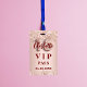 Um crachá VIP moderno, na moda e glamouroso para uma festa de aniversário Doce 16. Um fundo rosa dourado decorado com confete. Com o texto: VIP. Personalize e adicione o nome e os detalhes da festa.