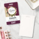 Crachá personalizado com um padrão de mármore de ouro e uma cor de entrelaçamento sólido em camadas diagonalmente juntas. Um círculo com uma borda falsa de folha de ouro, colocada sobre um bonito buquê floral com rosas, cravos e outras flores. Personalize com seu nome e dentro de monograma o círculo.
