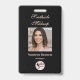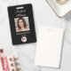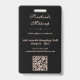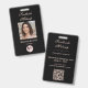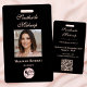 This elegant black business employee badge is designed for makeup artists, salon professionals, and beauty entrepreneurs who want a sophisticated brand look for their staff. Featuring a stylish portrait design, graceful script font, classic soft pink typography and a QR code, this template blends modern elegance with professional clarity. The front showcases your business name, the employee name and title, and logo alongside a customizable photo of your employee, while the reverse includes space for your salon details, QR code and contact details in case the badge is lost. Perfect for makeup artists, stylists or anyone in the beauty industry looking to create a memorable first impression.