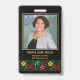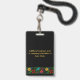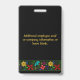 Design profissional e elegante com um delicado detalhe floral no fundo, sobre fundo preto. O brilhante e vibrante design floral de Suki's foi inspirado por artistas folclóricos equatorianos residentes na região de Los Andes, na América do Sul. Estes artistas têxteis latino-americanos especializam-se em intrincados e decorativos bordados feitos à mão. Todos os textos em tipografia dourada são personalizáveis para você personalizar seu crachá e torná-lo exclusivo. Ideal para grandes e pequenas empresas, escolas, eventos especiais e muito mais. Nota para transferência de design para outros produtos: Coloque as camadas design, uma ao lado da outra, quantas vezes for necessário para alcançar o comprimento desejado. A inclinação do padrão não funcionará como esperado, uma vez que o design simula uma fita fina com elementos de padrão correspondentes apenas nas extremidades.