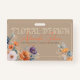 Seu crachá de negócios exude um charme delicado e artístico, insinuando perfeitamente a beleza do design floral. O fundo lembra um papel kraft, que lembra o papel natural ou talvez uma canvas sutilmente envelhecida, fornecendo uma base quente e orgânica. A inscrição elegante, ligeiramente gravada (imitação / trompe l’oeil) no topo declara orgulhosamente "FLORAL DESIGN" ( sua atividade comercial personalizável ) em um tipo clássico de letra falsa, sugerindo um eterno e uma abordagem sofisticada. Abaixo disto, o nome da sua empresa flui num guião gracioso e manuscrito em uma matiz quente de coral, adicionando um toque pessoal e artístico. Mais adiante, em uma fonte sans-serif menor e limpa, seu slogan encapsula lindamente a essência de seu negócio, mostrando seus pontos fortes e vantagens sobre os concorrentes. A verdadeira arte do seu crachá está nas delicadas ilustrações florais do estilo aquarela que enfeitam os cantos inferior esquerdo e superior direito. No geral, esse crachá de negócios é uma miniatura de arte, comunicando efetivamente uma paixão pelo design floral com elegância, calor e um toque de beleza caprichosa. Sugere um negócio que valoriza a arte, a beleza natural, e a criação de experiências florais verdadeiramente cativantes.