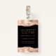 Adicione um pouco de brilho à sua aparência profissional com este Crachá de Foto Personalizado Elegante - perfeito para profissionais do setor de beleza, maquiadores, estéticos, funcionarios de salão e muito mais. Projetado com um rosa na moda de ouro ondulado e layout moderno limpo, este crachá de ID personalizado apresenta espaço para sua foto, nome, cargo e logotipo da empresa ou detalhes comerciais. Ideal para salões, bares de beleza, eventos e marcas profissionais, este crachá de nome elegante não só eleva sua apresentação, como também ajuda os clientes a se sentirem confiantes em seus serviços.
