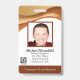 Crachá de ID abstrato personalizado com um design moderno e ondulado dourado marrom acima da foto do engenheiro de software ou técnico de reparo de TI. Adicione sua própria fotografia e informações personalizadas, incluindo cargo, nome do departamento, número de ID, data de emissão ou expiração e nome e logotipo da empresa ou negócio. Pode ser personalizado com seu código de barras de segurança pessoal no verso para acesso e autorização.