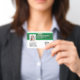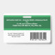 crachá durável, de alta qualidade, de identificação personalizada de empresa e hospital. Na parte frontal, adicione facilmente o logotipo da sua empresa (ou exclua), a foto do funcionário, o nome, o título e as informações de ID. No verso, adicione linhas adicionais de texto personalizado, ou seja, endereço comercial, email, número de telefone, local de construção, etc. Adicione também um código de bar, código QR ou logotipo da empresa - ou exclua. O crachá atual oferece um esquema de cor verde que pode ser facilmente alterado para corresponder às cores da sua empresa.
