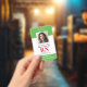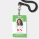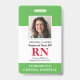 Crachá de Enfermeiro Registrado com ID de Fotografia Moderna RN. Design com antecedentes médicos verdes e brancos, fotografia do solteiro, nome do hospital, profissão e nome. Personalize com seu código de bar e detalhes de contato. Os crachás de ID modernos simplificam a identificação de funcionários por parte dos clientes e clientes. Para editar este modelo, clique em personalizar mais.
