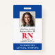 Crachá de Enfermeiro Registrado com ID de Fotografia Moderna RN. Design com antecedentes médicos azuis e brancos, fotografia do solteiro, nome do hospital, profissão e nome. Personalize com seu código de bar e detalhes de contato. Os crachás de ID modernos simplificam a identificação de funcionários por parte dos clientes e clientes. Para editar este modelo, clique em personalizar mais.