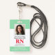 Crachá de Enfermeiro Registrado com ID de Fotografia Moderna RN. Design com antecedentes médicos verdes e brancos, fotografia do solteiro, nome do hospital, profissão e nome. Personalize com seu código de bar e detalhes de contato. Os crachás de ID modernos simplificam a identificação de funcionários por parte dos clientes e clientes. Para editar este modelo, clique em personalizar mais.