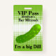 Divertimento todo o crachá acessório do partido da ocasião feito em um teste padrão verde e branco da reticulação do ponto, com gráficos de uma salmoura de aneto grande, no meio. O texto feito sob encomenda preto está pronto para personalizar para seu evento. Excelente para festas de aniversário, bar Mitzvahs, despedida de solteiro e mais.