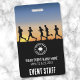 Distintivo de Evento Especial para Equipe de Maratona. Ótimo para maratonas, eventos de 5K, cross country ou competições de atletismo. Apresenta silhuetas de corredores com um céu de pôr de sol em tons de azul, laranja e amarelo. Na parte inferior, há uma fonte em negrito com "Equipe do Evento", o nome do evento, data e espaço para colocar seu logotipo. Você pode alterar todas as informações de texto e cores da fonte deste distintivo. Ele também pode ser usado para VIPs, imprensa e outros títulos especiais. Você pode até usar uma foto diferente, se quiser, mas ela pode não desvanecer para preto tão bem na parte inferior.