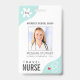 Crachá de foto de funcionário médico com um estetoscópio e um desenho de coração. O exemplo mostra o título de ENFERMEIRA DE VIAGEM, mas pode ser editado para qualquer cargo de funcionário. Inclua um logotipo ou exclua a imagem de exemplo. ALTERAÇÃO DE COR DE FUNDO: A cor de fundo verde menta pode ser alterada clicando na aba PERSONALIZAR MAIS. Entre em contato com o designer se desejar que este design seja modificado ou precise de ajuda com a cor.