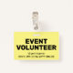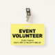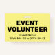 Este design básico do crachá contém a mensagem "EVENT VOLUNTEER" (EVENTO VOLUNTÁRIO). Um crachá como este poderia talvez ser usado para mostrar que o usuário é um representante oficial em um evento. [~Z0000307]