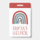 Distintivo de arco-íris do assistente do Papai Noel para eventos ou feiras de férias. Ho, ho, ho vermelho e branco do Papai Noel.