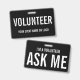 Voluntário Preto e Branco para evento na escola, museu, caridade, negócios, eventos corporativos, viagens de estudo. Você pode adicionar seu texto ou carregar o logotipo da sua empresa como uma imagem.