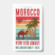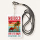Stylish Group Family Vacation ID Badge with CUSTOMIZABLE TEXT, featuring colorful vintage sunset design with camels and trees. In the top left hand corner, there is the Moroccan flag in the shape of a heart. The text is bold grunge sans serif typography, with family name and year. The Latin phrase says VENI VIDI AMAVI, which means I CAME, I SAW, I LOVED. On the back you have up to 7 lines for your contact details and group information. ALL TEXT IS CUSTOMIZABLE so you can make this totally PERSONALIZED for your family or group. Matching gifts and Marrakech version available. Contact me for design queries.