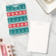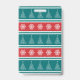 Ilustração de Feliz Natal com árvore de Natal e decoração de flocos de neve em fundo listrado de vermelho, branco, azul e turquesa