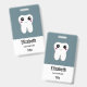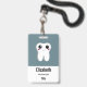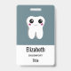 Crachá personalizado com um desenho de um dente branco grande com um sorriso kawaii fofo e grandes olhos felizes.