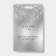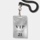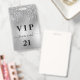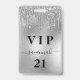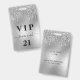 Um distintivo moderno, elegante e glamoroso para uma festa de aniversário de 21 anos (ou de qualquer idade). Um fundo de metal prateado falso com efeito de brilho e respingos de tinta. Personalize e adicione um nome e idade na frente. O nome é escrito com uma fonte moderna manuscrita e floreios. Com o texto: VIP e Número 21. Para manter os floreios, apenas exclua o nome da amostra, deixando os espaços ou emojis antes e depois do nome.