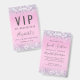 Um convite de aniversário 16 doce único que também serve como crachá para os convidados vestirem na festa e se manterem como um favor do partido de lembrança. Esta design bonito apresenta bordas de confete de falso brilho holográfico brilhante, roxo rosa e prateado, contra um fundo rosa, seu nome em um roteiro de cinza suave e "VIP All Access Pass" no topo. Do lado oposto, personalize o convite de aniversário.