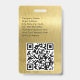Um design moderno minimalista com fonte elegante para nome personalizado e informações do evento. Fonte preta clássica com seus detalhes em um fundo com visual metálico dourado escovado e chique. O crachá pode ser personalizado com seu nome, informações de contato e links de mídias sociais. O código QR pode ser personalizado para direcionar para o seu site.