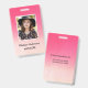 Cadalete de identificação de foto glitter ombre rosa e branco para salão, spa, maquiador, cabeleireiro, funcionário, equipe. Use a opção personalizar este modelo para alterar o texto na frente e no verso. Para ajustar a foto e o texto, use a opção personalizar ainda mais. Para qualquer ajuda na alteração do texto, use a opção de mensagem abaixo do nome da nossa loja. Crédito da foto: SnapwireSnaps no Pixabay.com