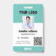 Este crachá de nome de funcionário personalizado é facilmente personalizável com uma foto, leitor de código de barras e logotipo da empresa. Um design de negócios direto em branco e azul com tamanhos de frente e verso totalmente ajustáveis, fontes sem serifa simples e contemporâneas, e uma aparência polida disponível com cordão, clipe de metal ou retrátil. Não há quantidade mínima de pedido.