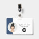 Personalize facilmente este Crachá de Nome de Funcionário Minimalista Horizontal Personalizado com Foto, Código QR de Varredura ou Código de Barras de Varredura e logotipo da empresa. Um design de negócios simples com foto redonda, em cores azul-marinho e branco totalmente personalizáveis nos tamanhos da frente e de trás, fontes básicas e modernas sem serifa e um visual profissional e claro. Disponível com cordão, clipe de metal ou retrátil. Sem pedido mínimo.