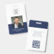 Este cartão de identificação vertical minimalista branco e azul marinho apresenta tipografia moderna e design simples. Personalize-o com sua foto, logotipo, nome, cargo, texto personalizado e URL.