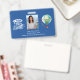 Estilo de design de tipografia moderna inspirador com foto de professor, funcionário ou voluntário, logotipo da sua escola ou mascote da escola e citação motivacional. Crachá perfeito para motivar você, funcionários e alunos. Adicione o nome dos professores, cargo e nome da escola. Texto opcional pode ser adicionado no verso.