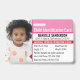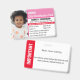 Este cartão de identificação infantil é perfeito para o seu filho. Ele contém coloração rosa, juntamente com texto preto na frente para endereço, estatísticas como altura, peso, tipo sanguíneo e data de nascimento. Há também espaço para adicionar números e nomes de contatos de emergência. Substitua a imagem do modelo pela do seu filho também!