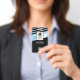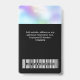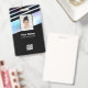 Personalize facilmente este crachá de nome de funcionário holográfico preto pastel personalizado com foto, código de barras de leitura e logotipo da empresa. Um design moderno e arrojado de negócios em cores pastéis baby totalmente personalizável nas tamanhos da frente e verso, fontes básicas sans-serif e modernas e um visual profissional e legal. Disponível com cordão, clipe de metal ou retrátil. Sem pedido mínimo.