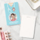 Cite o crachá médico com estetoscópio com ursinho de pelúcia em cima de esfregões azuis leves. Para obter materiais de marketing correspondentes adicionais, entre em contato comigo em maurareed.designs@gmail.com.