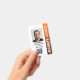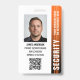 Crachá de guarda de segurança profissional com foto de perfil e logotipo da empresa. Este modelo editável pode ser personalizado com uma foto, nome, cargo, número de identificação, empresa, data de expiração, código QR e logotipo para marcas. Um design moderno com faixas de gradiente e uma fonte limpa. Ele oferece texto totalmente personalizável para ajustado da marca de sua empresa. Ideal para vários locais de trabalho e funções, como guarda de segurança, oficial de proteção próximo, segurança privada corporativa, segurança de loja, guarda pessoal, porteiro oficial, equipe de eventos, assistentes de varejo, funcionarios médico, passe para pequenas empresas, nomes de etiqueta de conferência e muito mais! Cores impressas: preto, branco e laranja. Compre a coleção para obter ideias e suprimentos de produtos de segurança mais populares para venda on-line.
