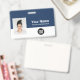 Personalize facilmente este Crachá de Nome de Funcionário Personalizado com Foto, Código de Bar de Digitalização e logotipo comercial, incluindo o estaleiro. Um simples design de negócios em cores azul e branco marinho totalmente personalizável em tamanhos frontais e traseiros, fontes básicas e modernas sans-serif e um visual profissional e claro. Disponível com ou sem jardim, clipe metálico ou com retratável. Sem ordem mínima.