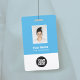Personalize facilmente este Crachá de Nome de Funcionário Personalizado Azul-Bebê Claro com Foto, Código de Bar de Análise e logotipo de negócio. Um simples design de negócios em turquesa verde e cores padrão brancas totalmente personalizáveis em tamanhos frontais e traseiros, fontes básicas e modernas sans-serif e uma aparência profissional e clara. Disponível com jardim, clipe de metal ou com retratável. Sem ordem mínima.