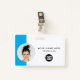 Personalize facilmente este Crachá de Nome de Funcionário Minimalista de Negócios Horizontal Personalizado com Foto, Digitalizar Código Qr ou Digitalizar Código de Bar e logotipo comercial. Um simples design de negócios com fotos redondas, com cores claras, azuis e brancas, totalmente personalizáveis nos tamanhos frontal e traseiro, fontes básicas e modernas sans-serif e uma aparência profissional e clara. Disponível com jardim, clipe de metal ou com retratável. Sem ordem mínima.