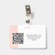 Personalize facilmente este Crachá de Nome de Funcionário Minimalista de Negócios Horizontal Personalizado com Foto, Digitalizar Código Qr ou Digitalizar Código de Bar e logotipo comercial. Um simples design de negócios com fotos redondas, em cores cor-de-rosa e branca, cor-de-rosa-pincelada e branca, totalmente personalizável nos tamanhos frontal e traseiro, fontes básicas e modernas sans-serif e uma aparência profissional e clara. Disponível com jardim, clipe de metal ou com retratável. Sem ordem mínima.