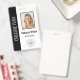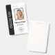 Adicione um toque de elegância contemporânea à sua identidade corporativa com este design de crachá. O layout apresenta uma estética de blocos limpa, com dois tons, com um bar preto em negrito que fornece um pano de fundo impressionante para a foto e a informação de um funcionário. Este design elegante é perfeito para projetar uma imagem de marca profissional e unificada.