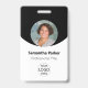 Personalize esses crachás de funcionários pretos verticais com uma foto de funcionário, logotipo da empresa, código de bar, ID e nome do funcionário.