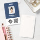 Personalize facilmente este Crachá de Nome de Funcionário Personalizado com Foto, Scan QrCode e Código de Bar e logotipo comercial. Um simples design de negócios em cores azul e branco marinho totalmente personalizável em tamanhos frontais e traseiros, fontes básicas e modernas sans-serif e um visual profissional e claro. Disponível com jardim, clipe de metal ou com retratável. Sem ordem mínima.