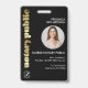 Este Crachá de ID de foto notarial preto e Dourado profissional exclusivo com o código QR é muito fácil de editar. Basta soltar sua foto no quadro redondo incorporado e mudar o texto e você está pronto para ir! Marca-se como um notário profissional e identifique-se em segurança na mesa de assinatura!